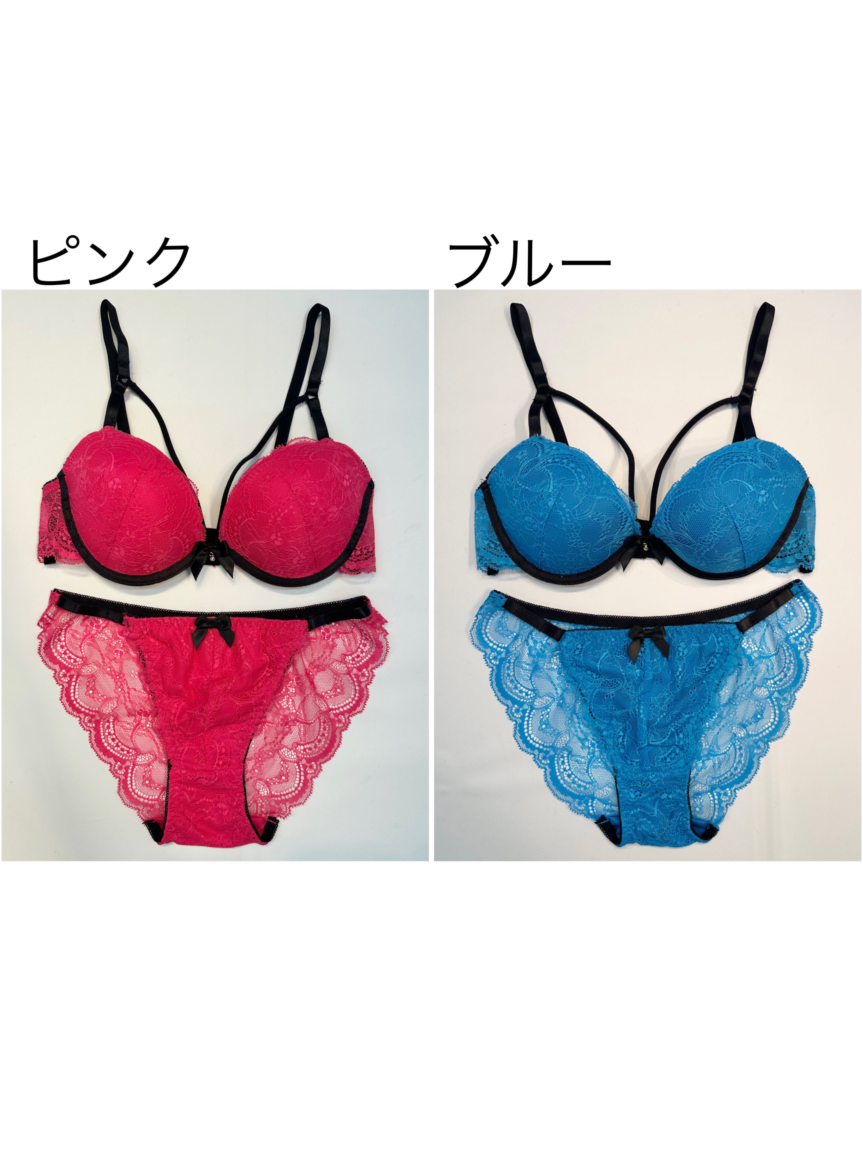 華やかなビビットカラーのレースにブラックコード&パイピングデザインが映えるセクシーさ満載のランジェリー。胸元にあしらったチャーム付きのリボンでさりげなく女の子らしさをプラス。ショーツは繊細なバックレース仕様で上品な透け魅せを演出します♡