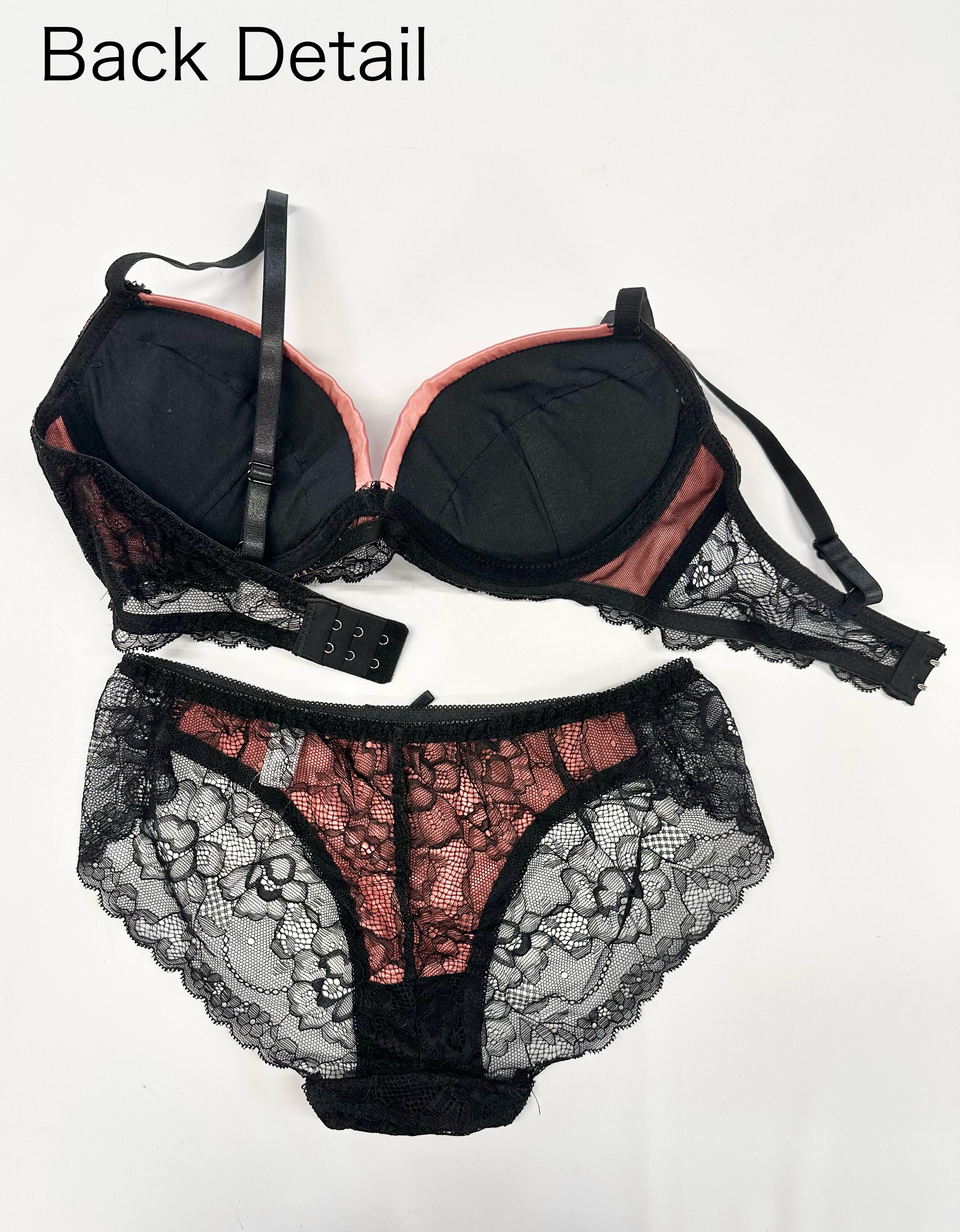 明るいカラーのサテンとブラックレースのコントラストが目を惹く、セクシーなランジェリー。中心にあしらったリボンがほんのり女の子らしさをプラス♡ショーツは素肌が透けるバックレース仕様で、後ろ姿まで抜かりなく華やかに見せてくれます。