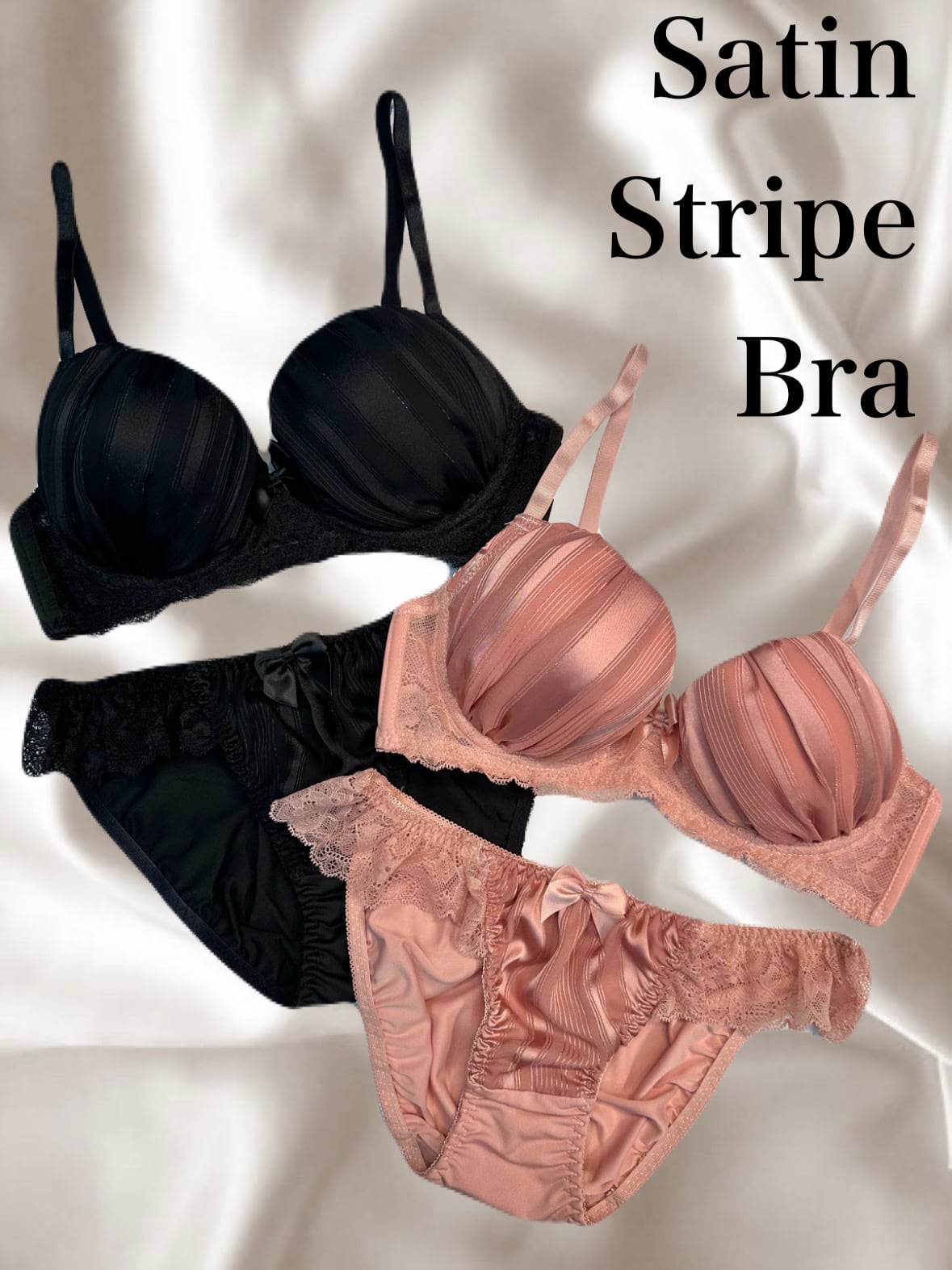 きらりと光るラメストライプ柄と繊細なレースの組み合わせが大人可愛いを演出するランジェリー。中心にあしらわれた大きなサテンリボンがガーリーな魅力をプラス◎ショーツサイドは透け感のあるフリルレースで可愛らしいだけでなくほどよく色気も感じさせます。