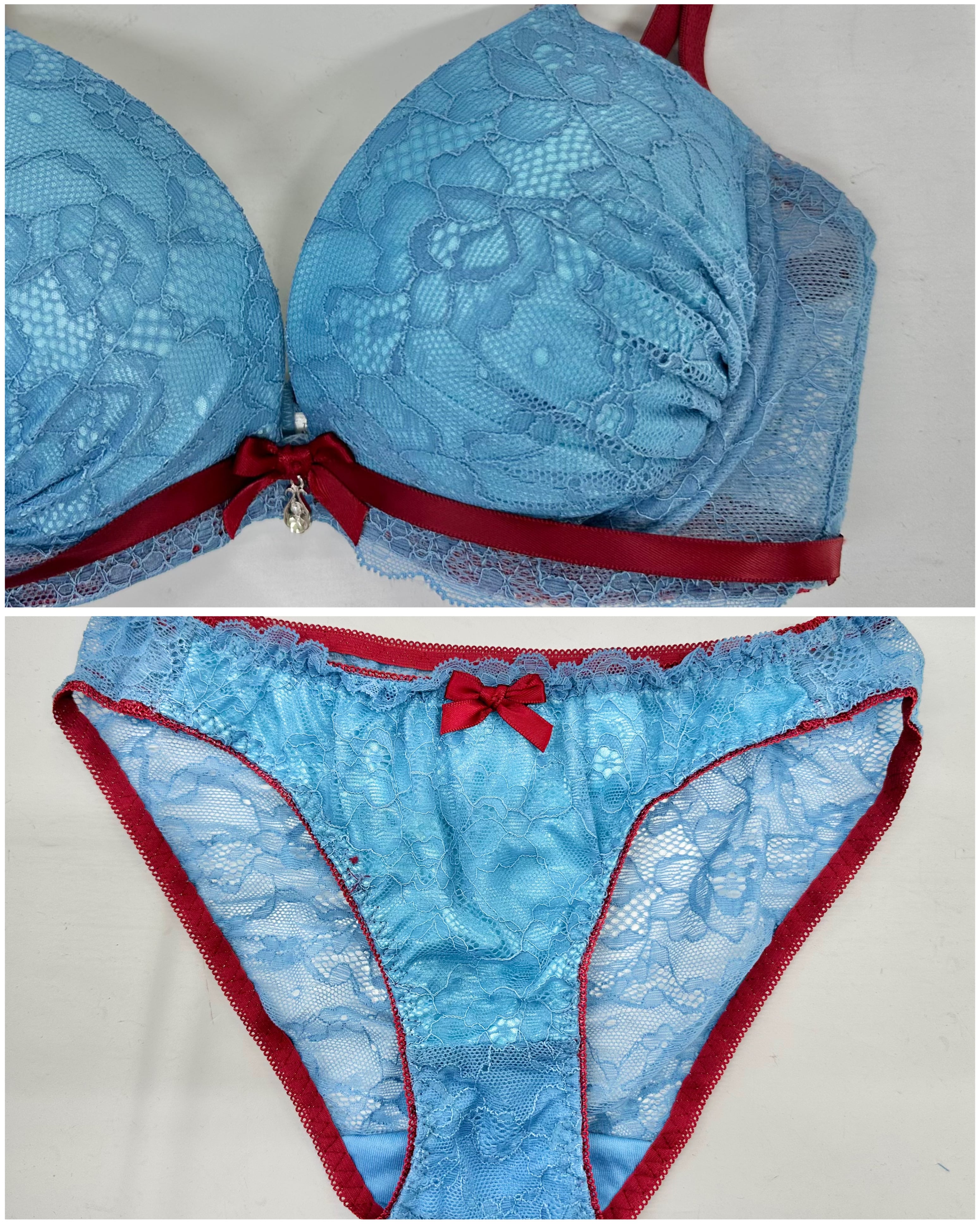 インポートランジェリーのような、POPなバイカラーが目を惹くブラセットです。カップ下のサテンリボンデザインがラッピングされてるみたい♡人と被りたくない方におすすめの一着です。