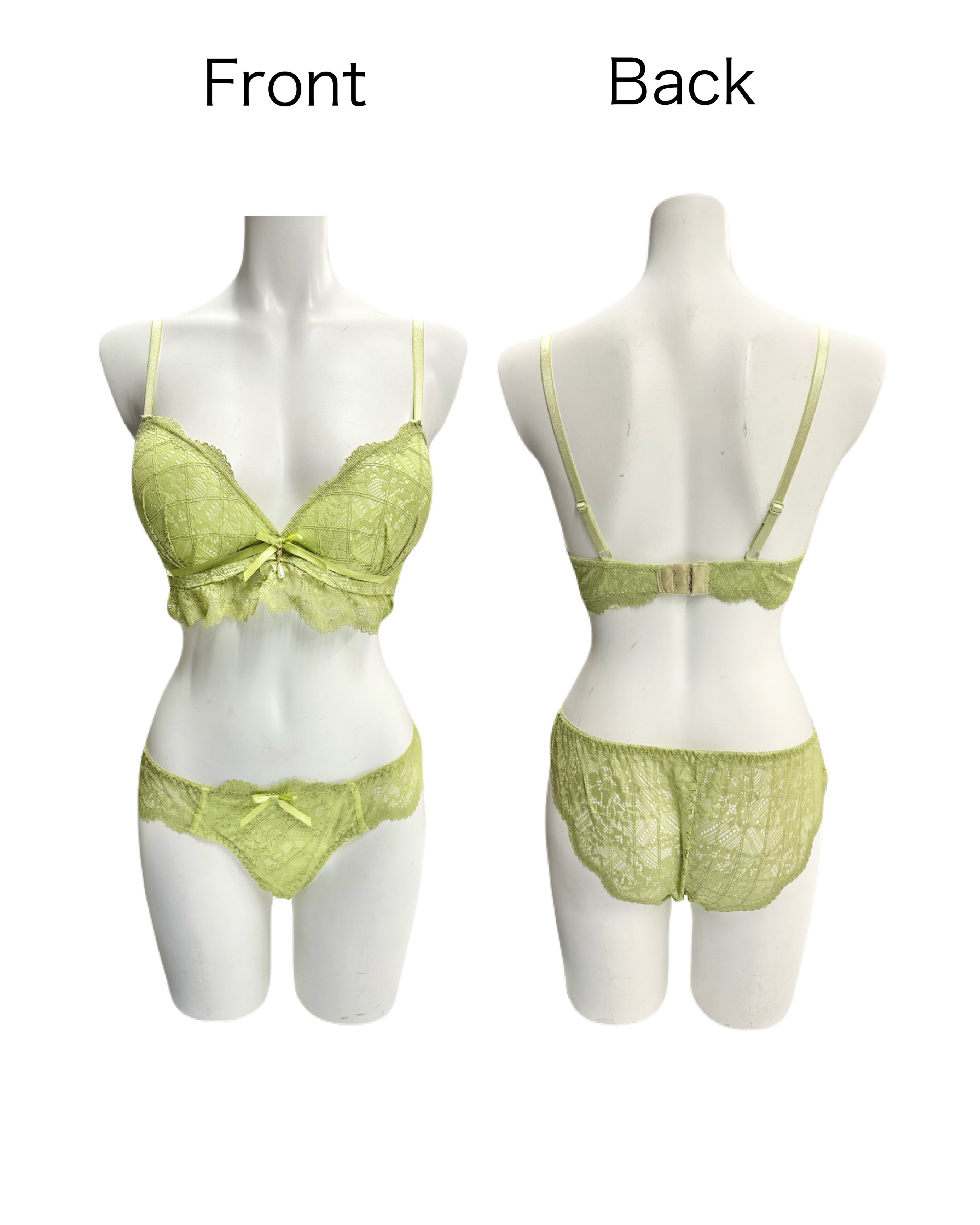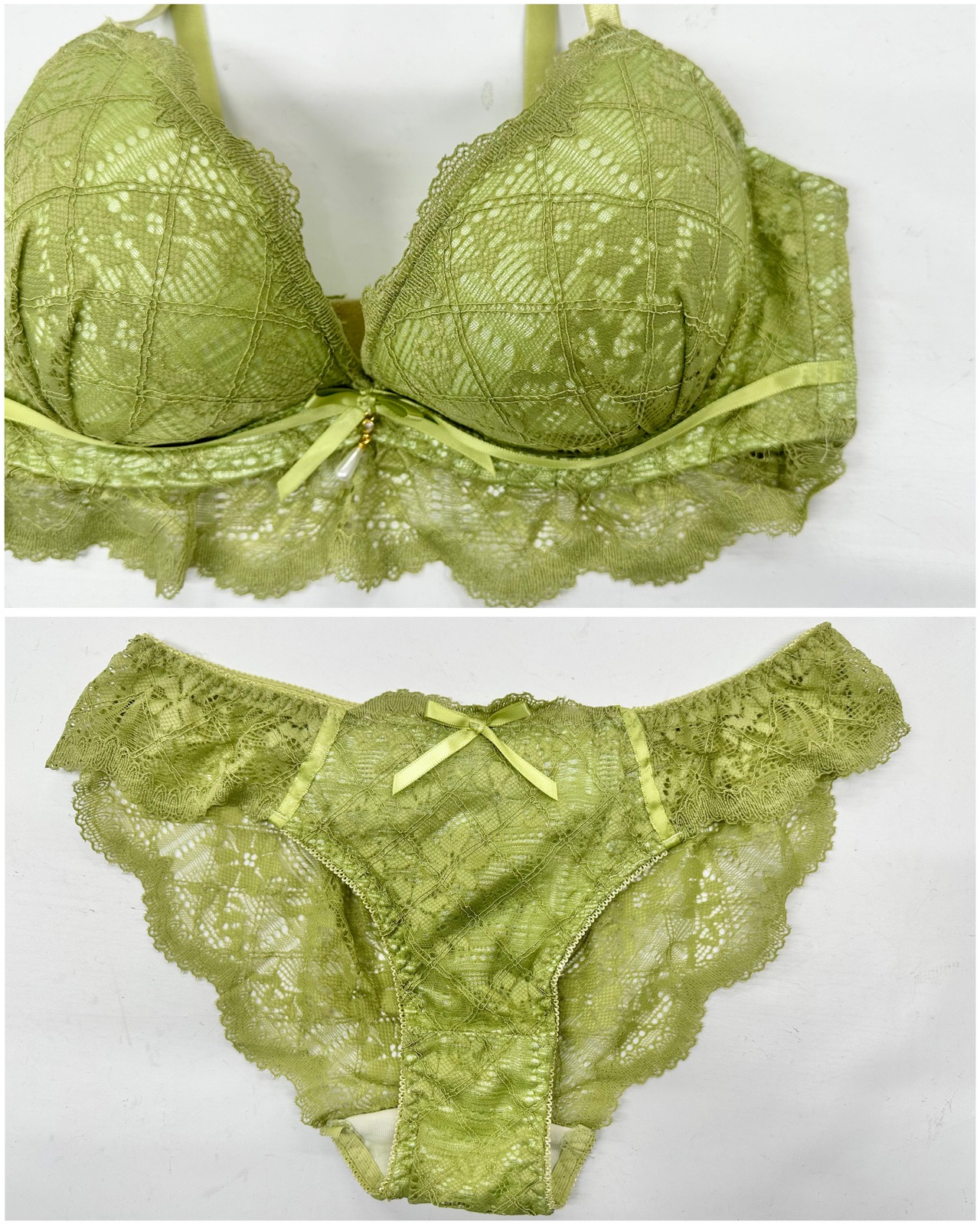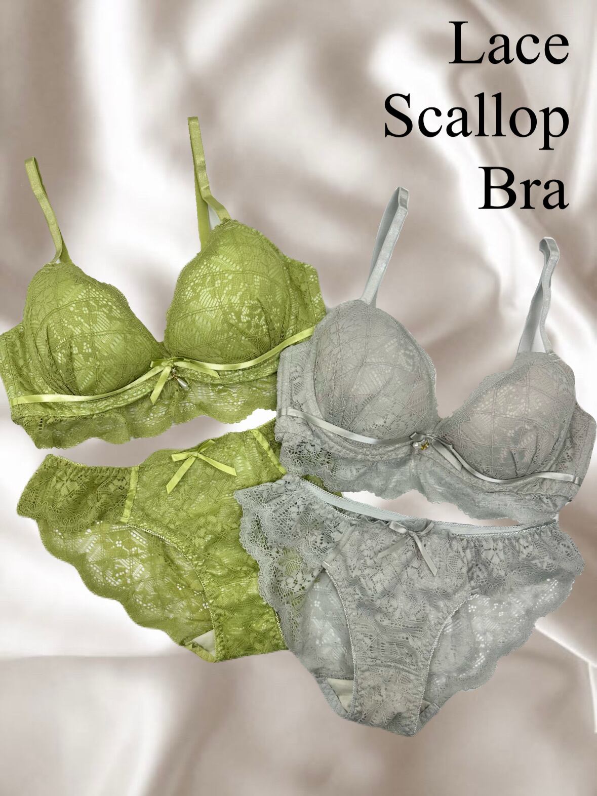 落ち着いた雰囲気のあるスカラップレースが上品な印象を与えてくれるランジェリー。バック透け仕様で後ろ姿から色気漂うデザインです。