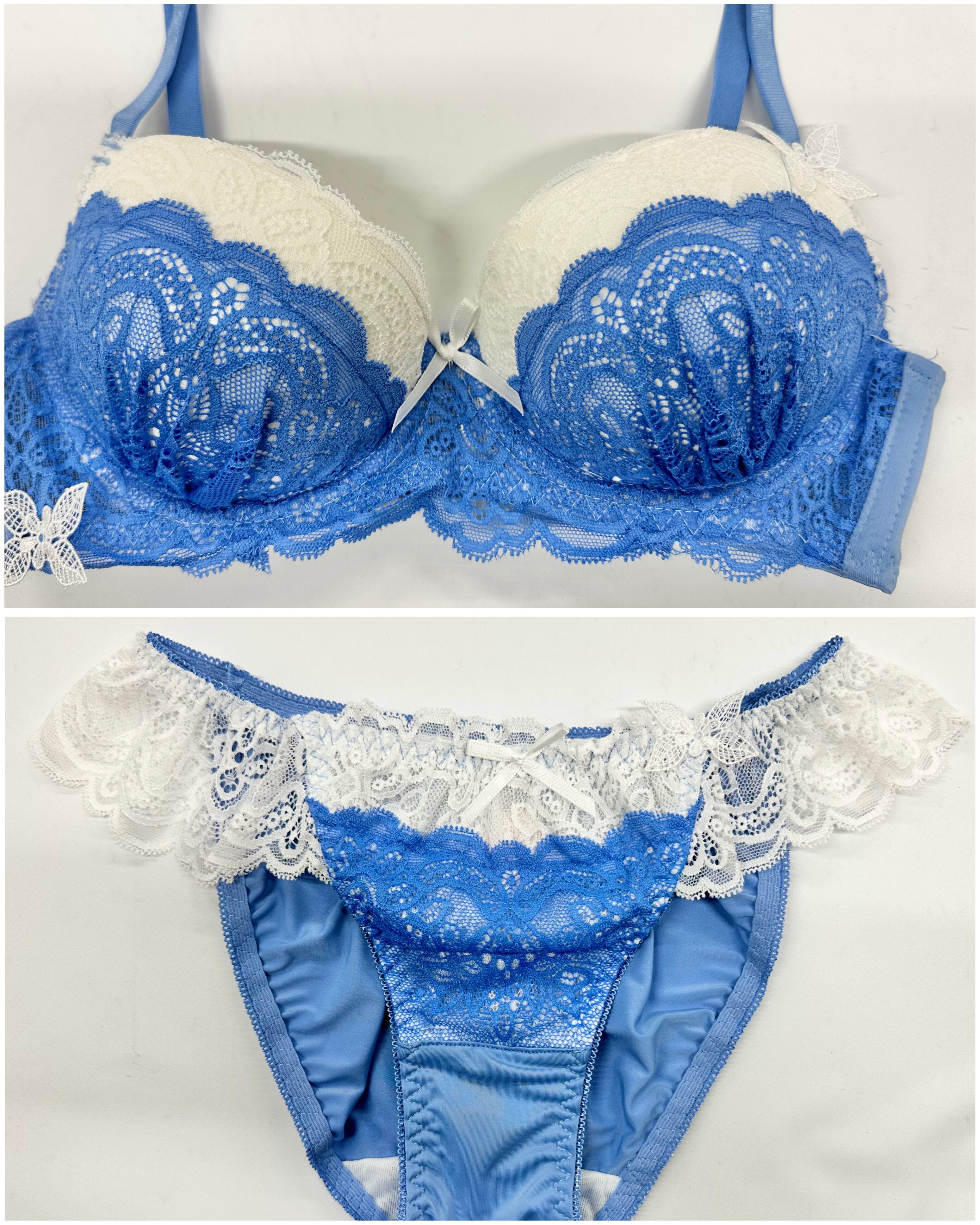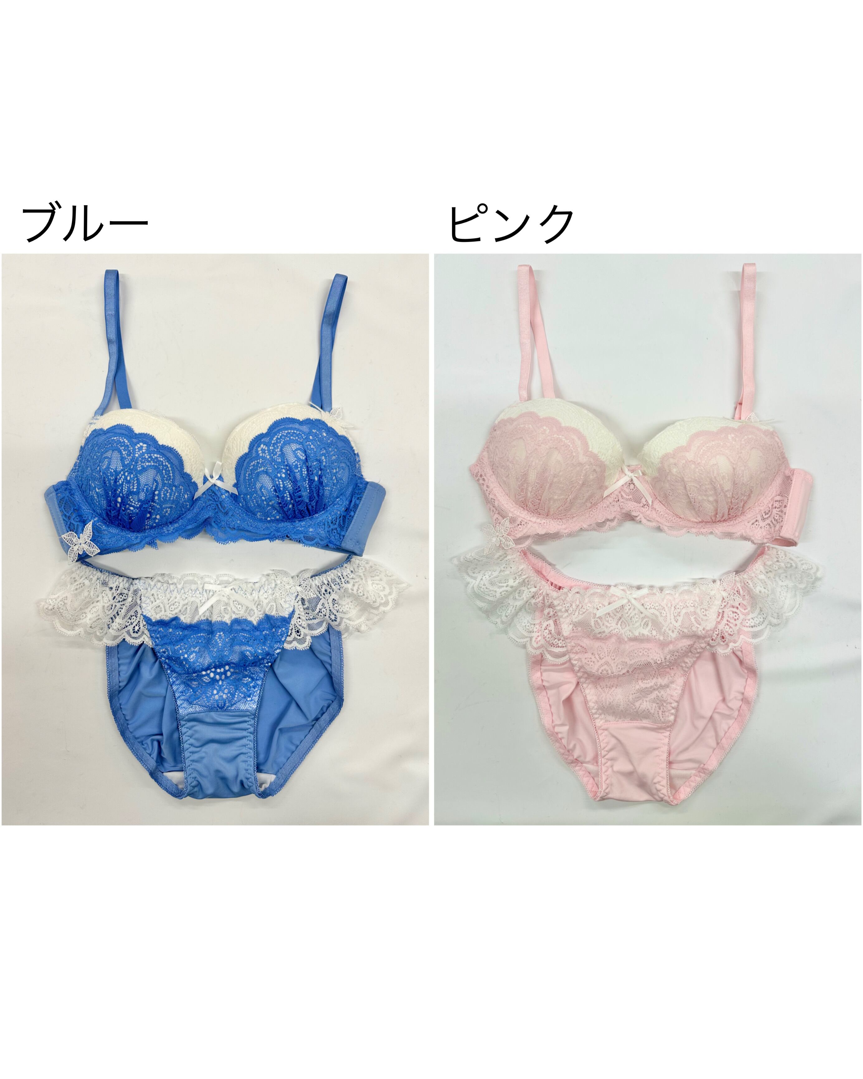 さりげない蝶々のケミカルレースが特別感満載♡明るくて可愛らしい絶妙なカラーリングが目を惹く、これからの季節にぴったりなブラセットです。